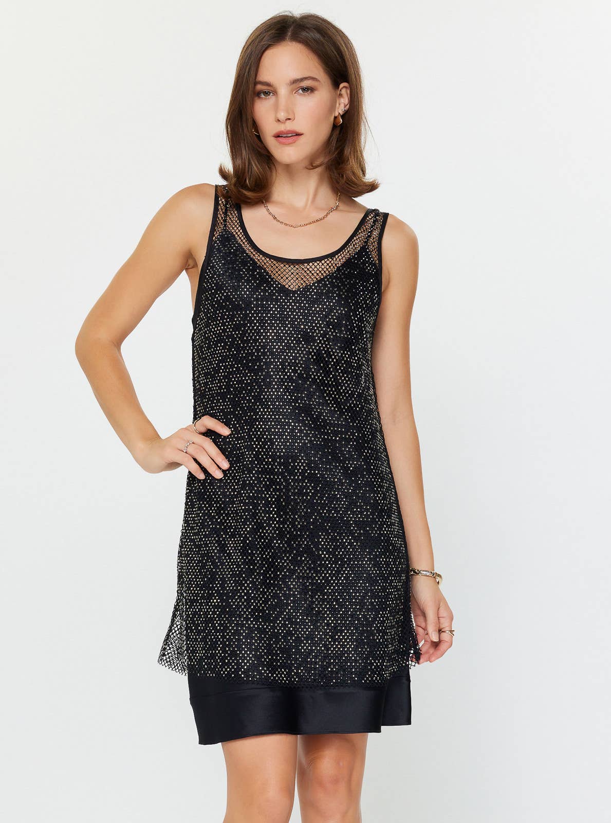 Current Air - Rhinestone Sleeveless Cami Dress: Black