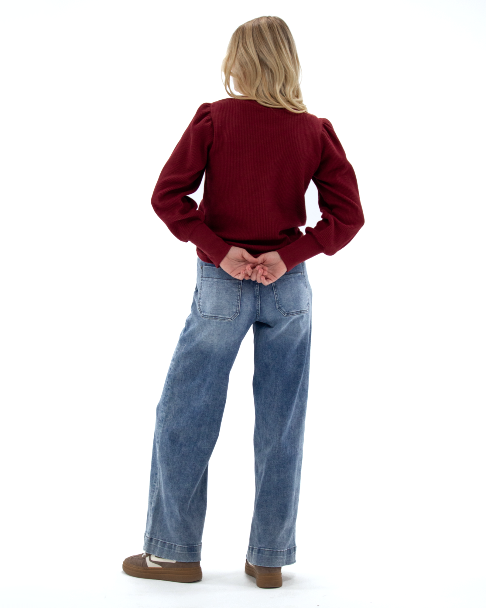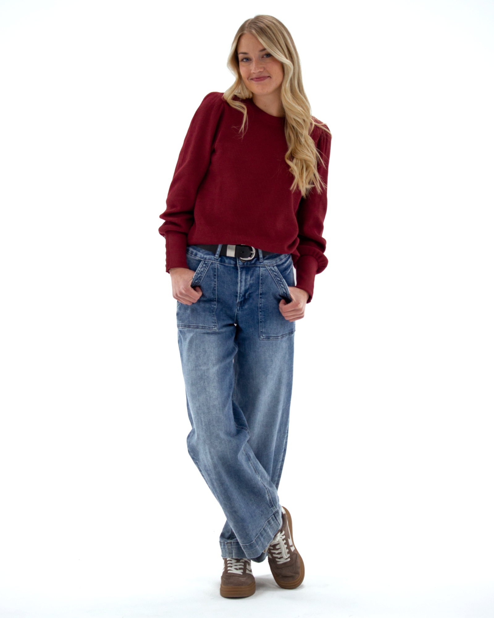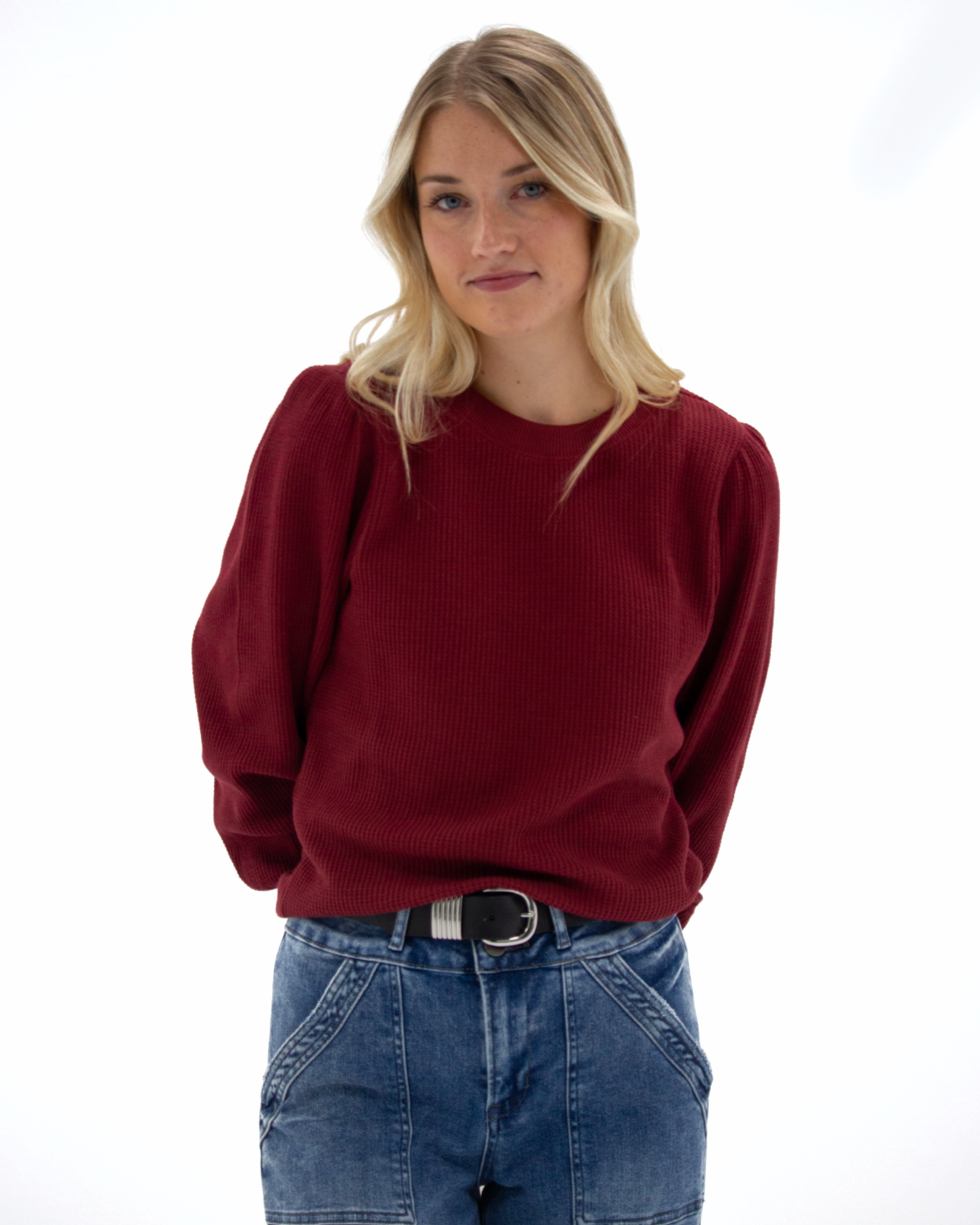 Downeast - Best Days Bishop Long Sleeve Waffle Knit Pullover Top: Biking Red