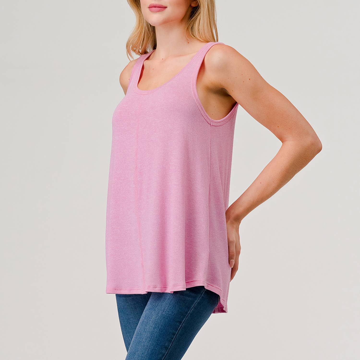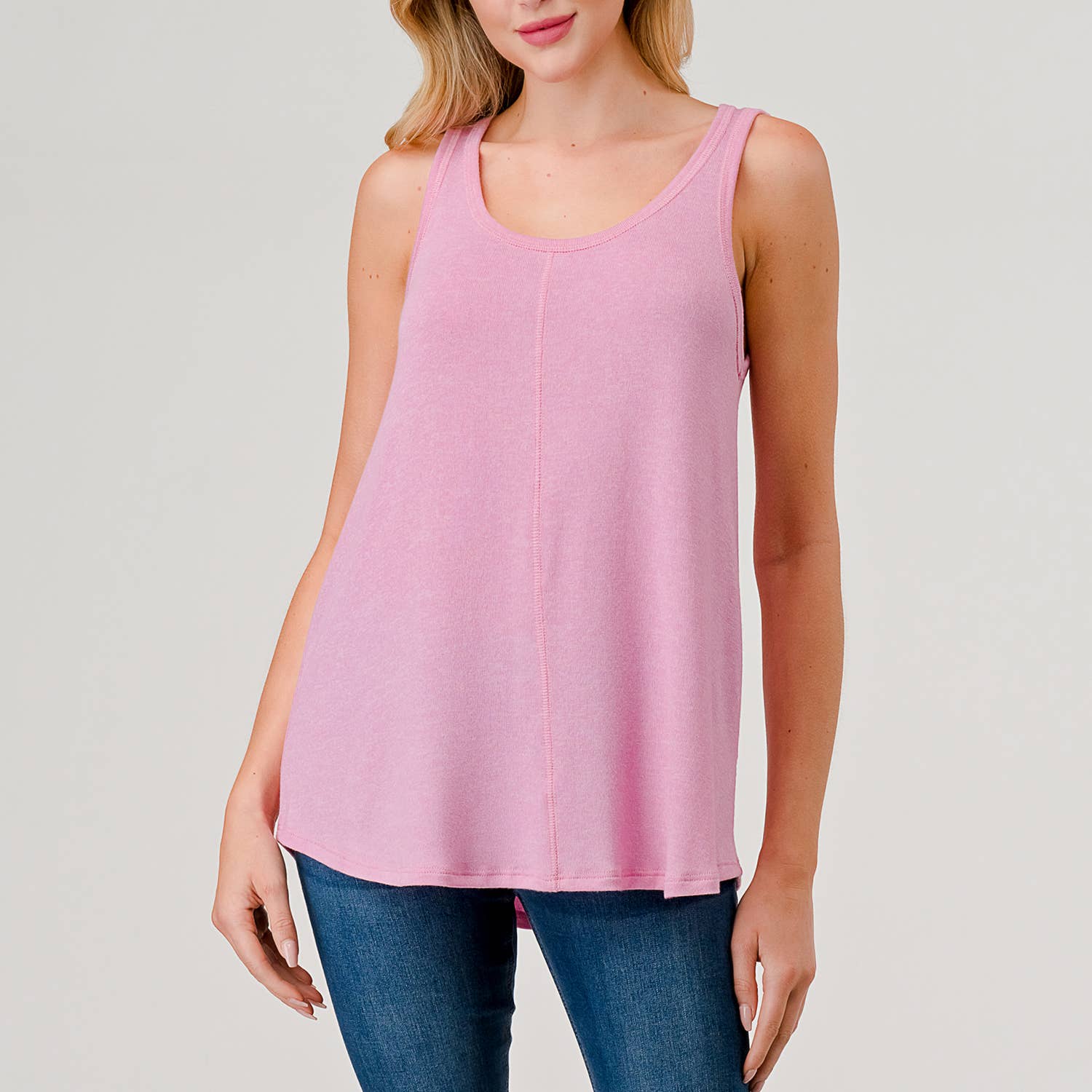 Heimious - Round Neck Relaxed Fit Knit Tank Top in PINK