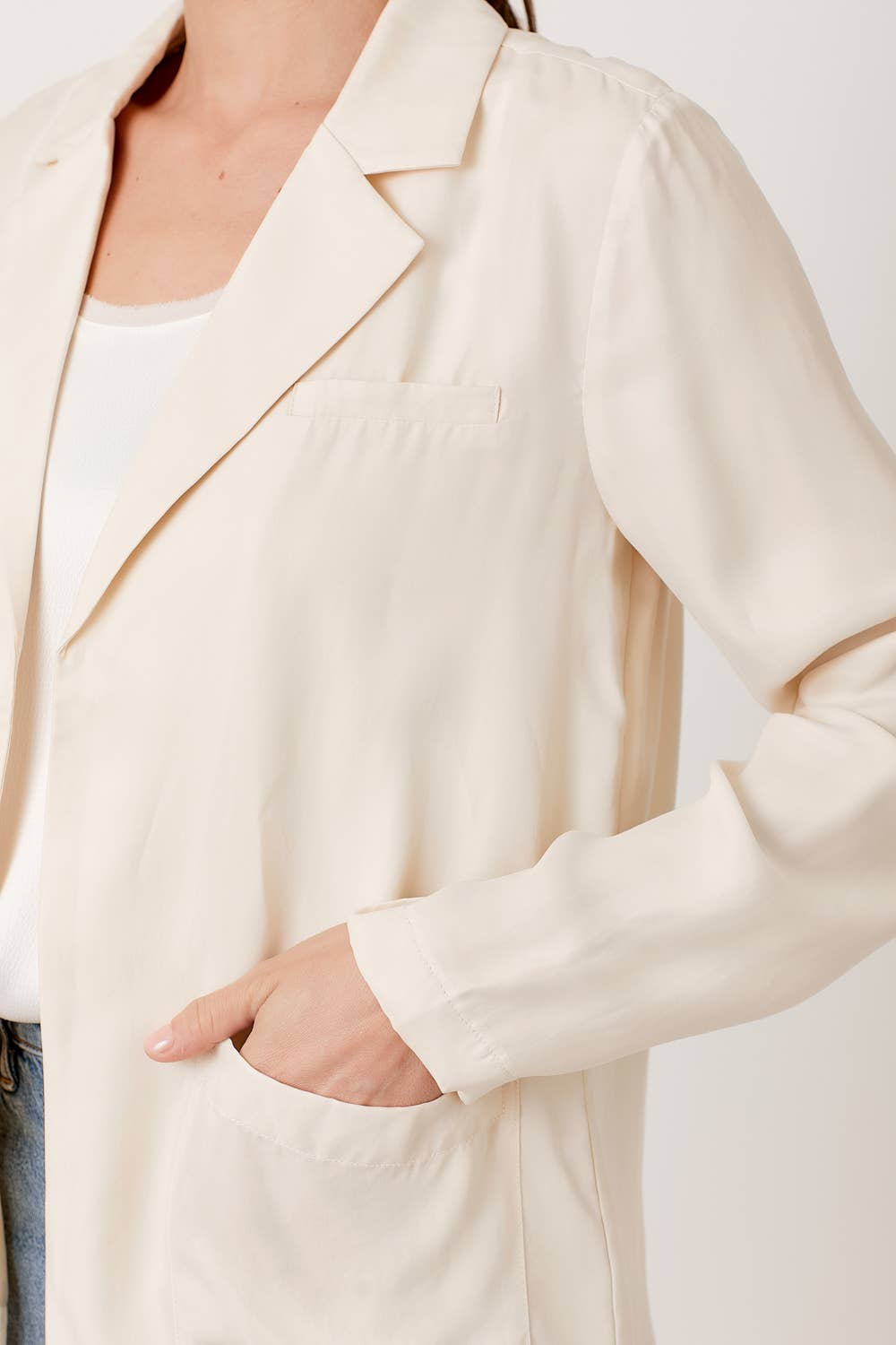 Modal Open Jacket in Cream Effortlessly layered elegance meets everyday comfort in this modal open jacket. Crafted from breathable modal fabric, this long-sleeved piece drapes with a fluid, refined silhouette that works seamlessly over dresses, tees, or tanks. The open front design offers versatile styling—wear it unbuttoned for an airy, relaxed look or cinched for a more polished appearance. The cream tone pairs with virtually any wardrobe staple, making it an essential transitional layer for spring and fall. Modal's natural softness and moisture-wicking properties ensure all-day wearability without sacrificing sophistication.